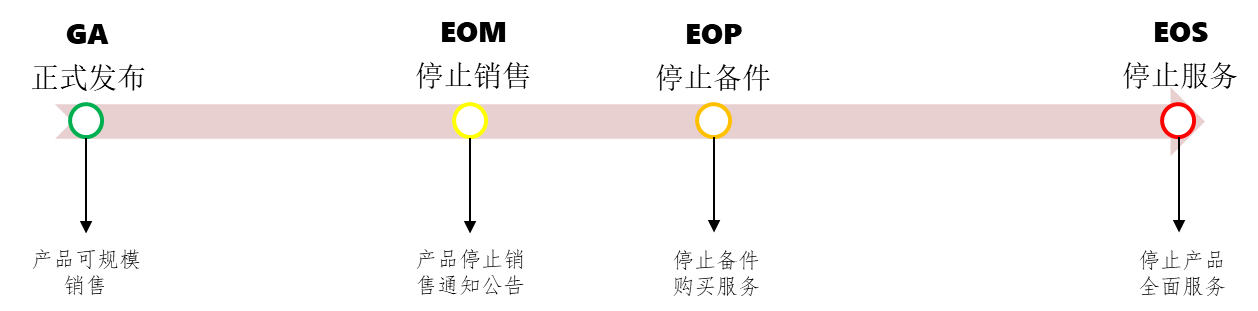 | EOM | 停止銷售日 End of Marketing | 公司正式停止銷售的日期,是產品停止接受訂單日,包括新的和擴容訂單。該日之后,產品將不再銷售。 |