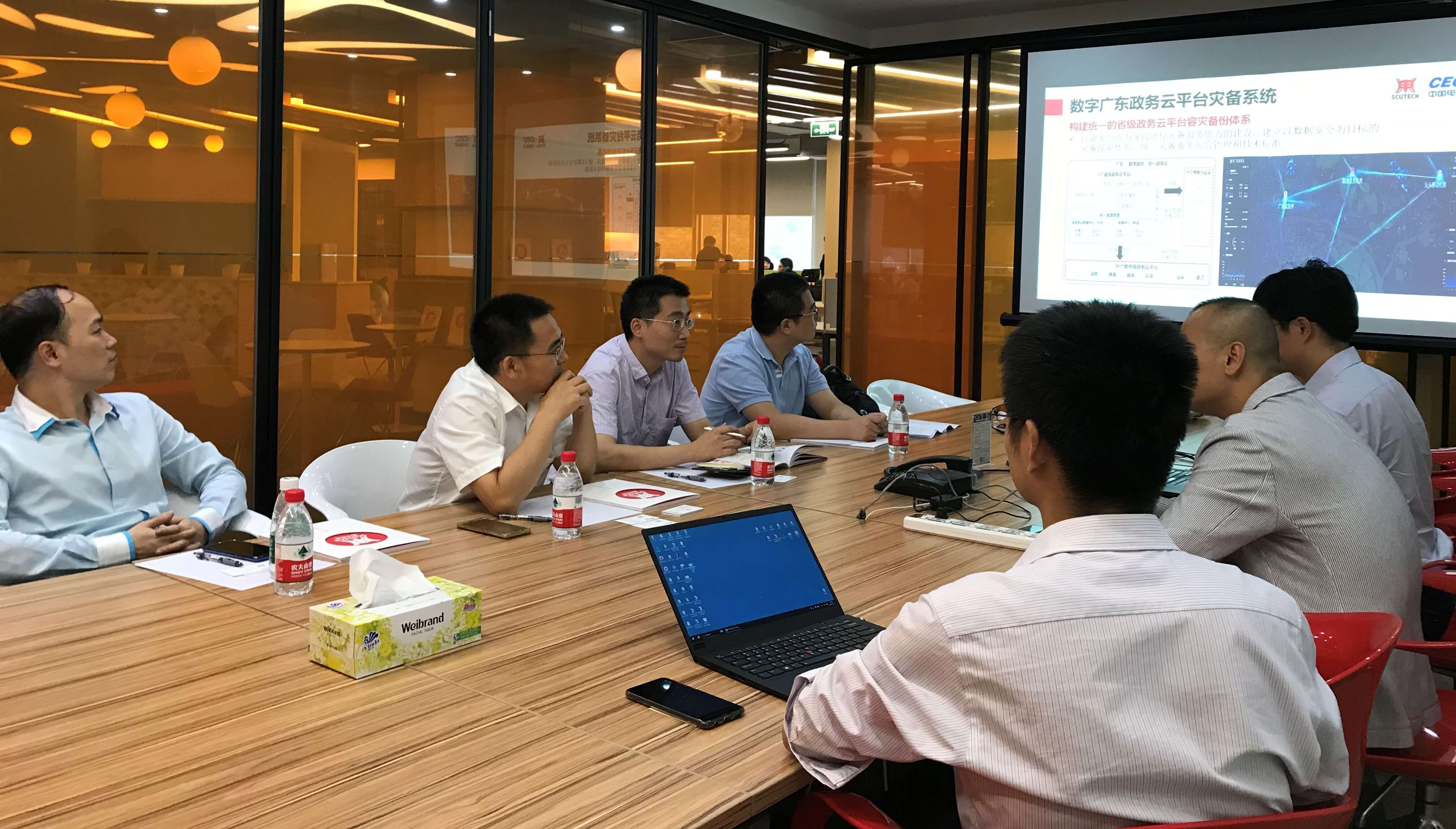 隨后的座談會上,雙方就中國信息化發展、國產化替代以及數據容災備份等話題展開了深入的研討交流。交流過程中,呂曉峰分享了鼎甲在省級政務云的容災備份方案,也重點介紹了鼎甲在黨政軍等行業的案例成果,并現場演示了鼎甲迪備(DBackup)數據保護系統。