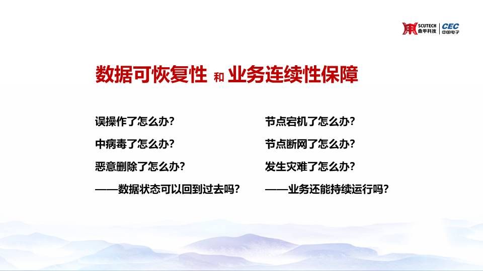 第一部分,你從哪里來(lái),我的CDM。 我們講CDM從哪里來(lái)主要要回到我們整個(gè)災(zāi)備行業(yè)的兩大基本需求,災(zāi)備行業(yè)最重要的兩個(gè)需求,它都是來(lái)自于一些災(zāi)難性的場(chǎng)景,那么我們看一下到底有一些什么場(chǎng)景。 比如說(shuō)誤操作、中病毒,又比如惡意刪除、刪庫(kù)跑路這種。 當(dāng)發(fā)生這些,我們叫數(shù)據(jù)上的邏輯錯(cuò)誤的時(shí)候,我們需要把這個(gè)數(shù)據(jù)狀態(tài)調(diào)回到?jīng)]有發(fā)生這些錯(cuò)誤之前。