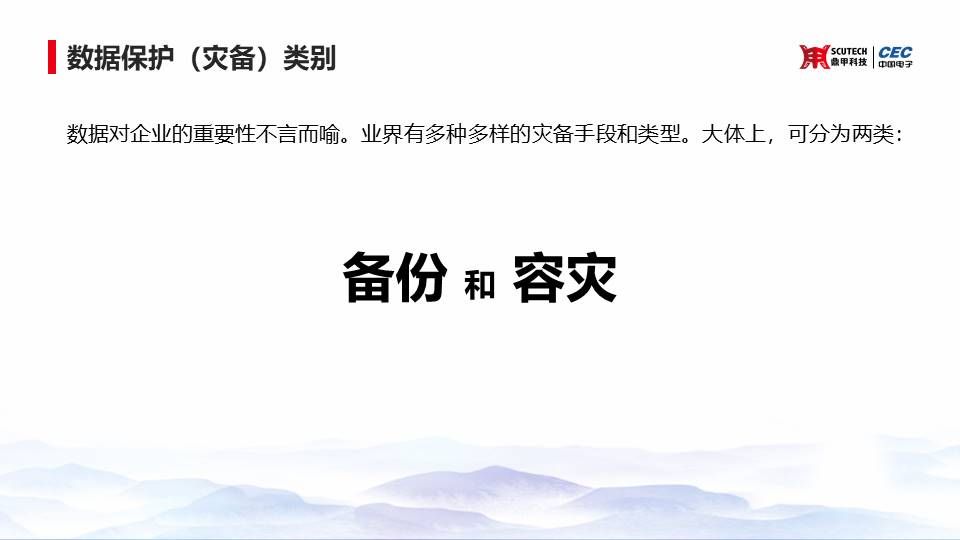 這是災(zāi)備行業(yè)的第二個(gè)問(wèn)題,那么這兩個(gè)問(wèn)題其實(shí)是兩個(gè)需求的核心,一個(gè)是數(shù)據(jù)可恢復(fù)性,一個(gè)就是業(yè)務(wù)的連續(xù)性的保障。面對(duì)這兩個(gè)核心的需求,我們?yōu)膫湫袠I(yè)的廠商是做了很多工作,主要的內(nèi)容就是備份和容災(zāi)。也就是說(shuō),備份和容災(zāi)其實(shí)是兩件不同的事情。