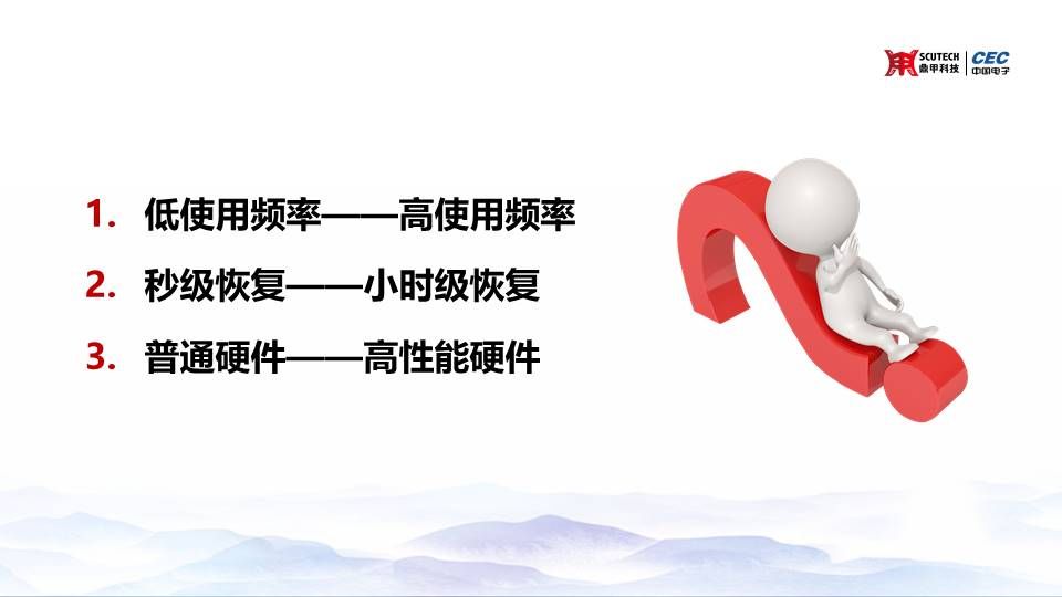 因?yàn)镃DM是脫胎于備份,CDM的廠商也主要是以備份廠商為主,那我們?cè)谧鑫覀儺a(chǎn)品的時(shí)候,在我們的想象中,我們的產(chǎn)品在被用戶使用的頻率一般是不會(huì)很高的,因?yàn)橛脩舭l(fā)生災(zāi)難的頻率不會(huì)很高。但是CDM這個(gè)東西是不一樣的,它的頻率會(huì)變得非常高。然后呢,秒級(jí)恢復(fù)到小時(shí)級(jí)恢復(fù),這里面就講到我剛才說(shuō)到的一個(gè)日志回滾的時(shí)間。第三個(gè)硬件,我們CDM的這個(gè)設(shè)備,它所使用的硬件是不是一個(gè)普通的備份一體機(jī)能夠搞定,這也是一個(gè)非常重要的問(wèn)題。