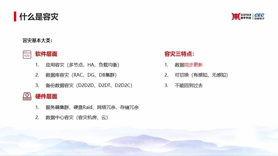 那么什么是容災(zāi)呢?我們顧名思義它是災(zāi)難的冗余嘛,在災(zāi)難來(lái)臨的時(shí)候,我們不至于說(shuō)整個(gè)業(yè)務(wù)沒(méi)有辦法進(jìn)行了。容災(zāi)這件事情它有三個(gè)非常突出的特點(diǎn),第一個(gè)容災(zāi)的數(shù)據(jù)它是同步更新的,一旦你在一個(gè)節(jié)點(diǎn)上刪除了一個(gè)數(shù)據(jù),那么其他節(jié)點(diǎn)相應(yīng)的數(shù)據(jù)也就跟著刪除了。