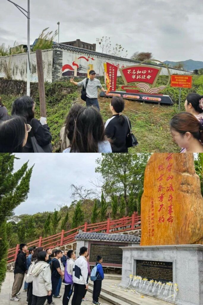 活動(dòng)第二站,大家來(lái)到從化云臺(tái)山戰(zhàn)役遺址。從化云臺(tái)山戰(zhàn)役作為解放廣州最后一場(chǎng)重要戰(zhàn)斗,猶如一把關(guān)鍵鑰匙,為我軍順利進(jìn)入廣州市區(qū)打開(kāi)了重要通道,此后再未遭遇敵人有組織抵抗。戰(zhàn)役中有50名解放軍戰(zhàn)士英勇?tīng)奚麄円宰约荷鼮榇鷥r(jià),換來(lái)了廣州解放。在莊嚴(yán)肅穆的氛圍中,大家集體默哀,深切緬懷革命先烈。