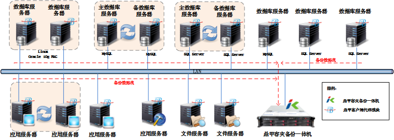 在浙江省糧食局電子政務(wù)內(nèi)網(wǎng)部署一臺鼎甲信息倉,可以實(shí)現(xiàn)對數(shù)據(jù)庫與應(yīng)用系統(tǒng)的數(shù)據(jù)備份保護(hù);同時(shí)能夠?qū)崿F(xiàn)操作系統(tǒng)的整機(jī)備份,當(dāng)物理服務(wù)器硬件故障引起操作系統(tǒng)故障時(shí),可以將整機(jī)操作系統(tǒng)恢復(fù)到新的硬件平臺上。鼎甲信息倉同時(shí)提供基于Web的統(tǒng)一監(jiān)控與管理功能,智能報(bào)表功能,并提供數(shù)據(jù)恢復(fù)安全增強(qiáng)功能模塊。